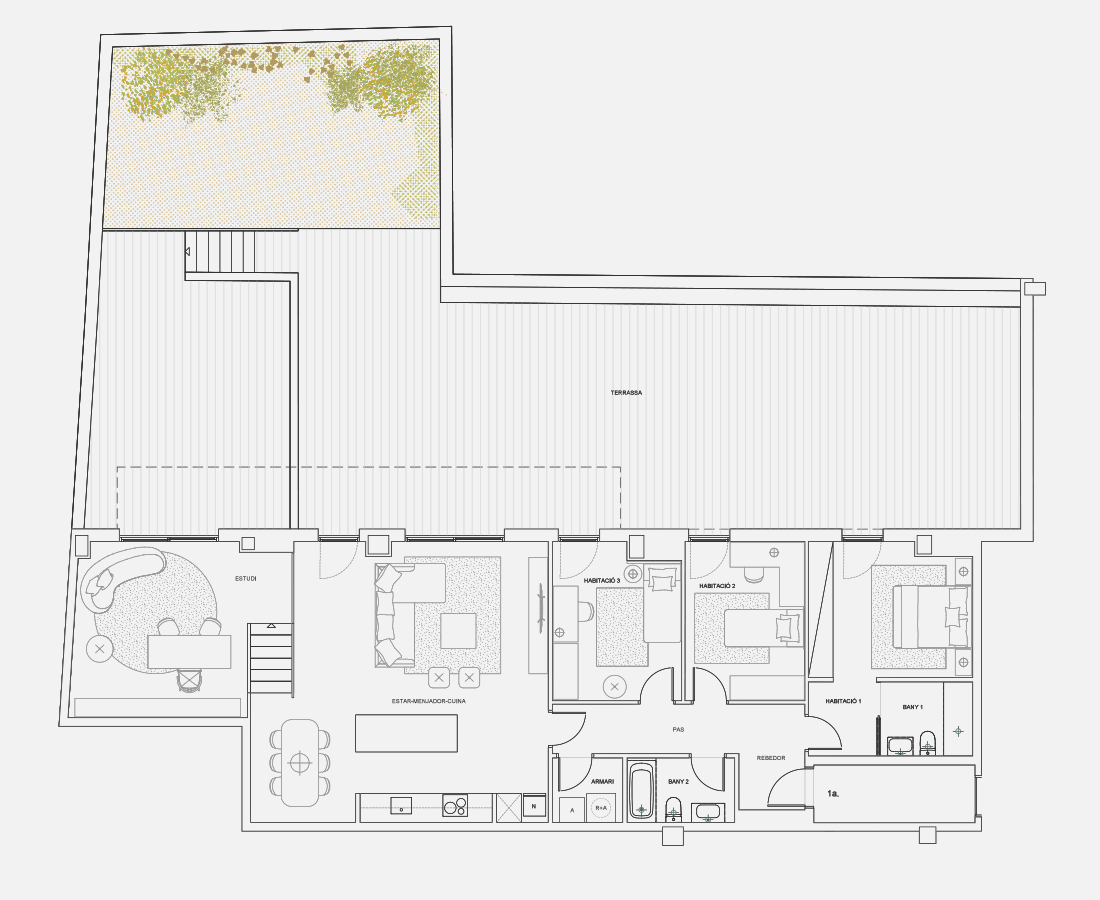 Edifici residencial format per 21 habitatges de 2 i 3 dormitoris amb àmplies terrasses i planta baixa de l’edifici d’àmplies dimensions i amb una excepcional terrassa d’ús privatiu on poder gaudir amb la família i amics.
